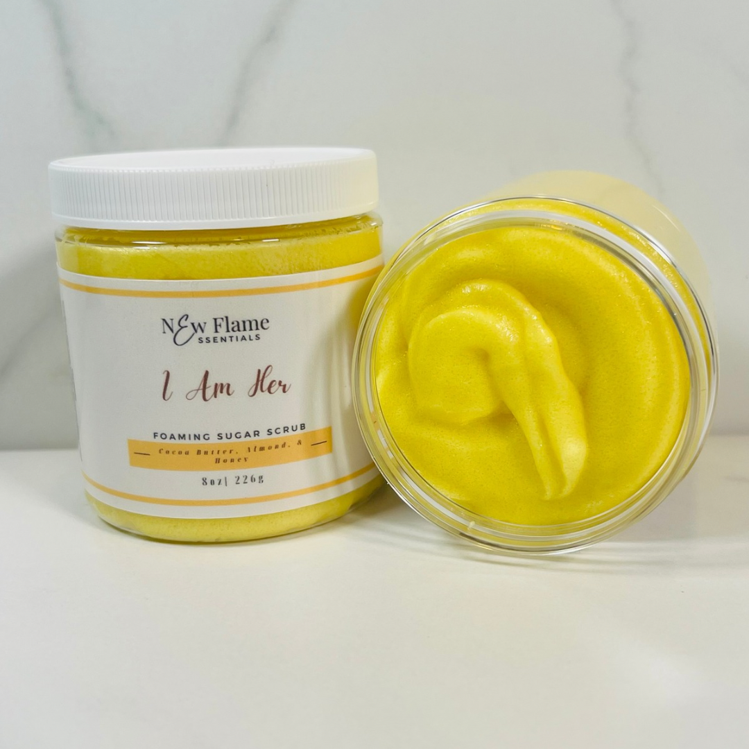 This body scrub is designed to exfoliate and polish the skin, getting rid of dead skin cells, dirt and buildup. Exfoliating preps the skin to allow for your creams and oils to work better since they will not have to fight through layers of dead skin to provide nutrients to your skin. Since it is a foaming scrub it will have a light lather when combined with water.